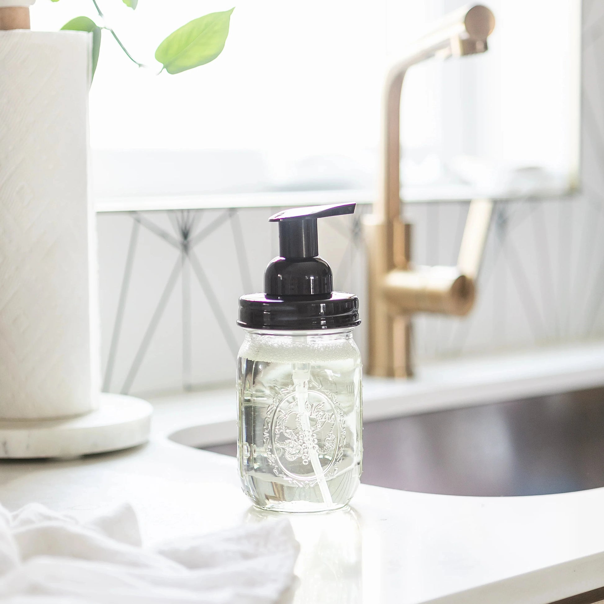 With an extra-long dip tube and standard threading, the foaming pump works with most vintage and contemporary jars, including half-pint, pint, and quart jars. Compatible brands include Ball, Kerr, Kilner, Golden Harvest, as well as countless unbranded jars on supermarket shelves. Simply trim the tube with scissors so it just touches the bottom of your jar.