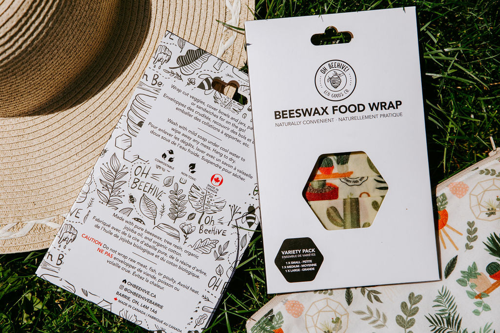 Each wrap is handmade in Canada using 100% cotton, Canadian beeswax, tree resin, and jojoba oil. Naturally antibacterial and breathable, they help keep food fresher for longer without waste.